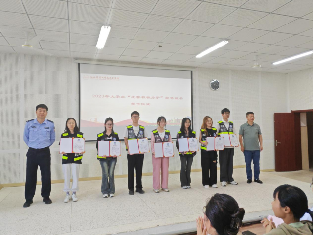 培训结束后,蔡慧碧和薛浩为10名志警服务队员颁发了“志警积极分子”荣誉证书。(文、图/后勤保障处,审核/蔡慧碧)