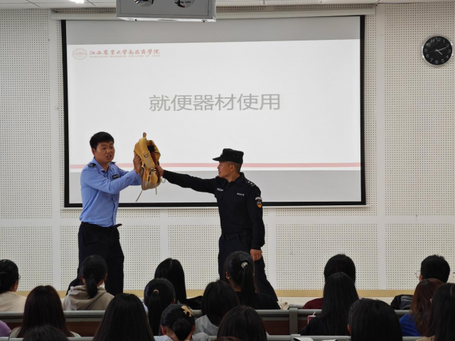 为提高校园突发事件应急处置能力,11月2日,后勤保障处在科创楼KN102开展2023级新生班级安全员自我防护技能培训。本次培训邀请了共青城市公安局特巡警大队、志愿者警务协助协会警官一行前来授课,后勤保障处副处长蔡慧碧、安全保卫科老师及各系新生70余人参加。